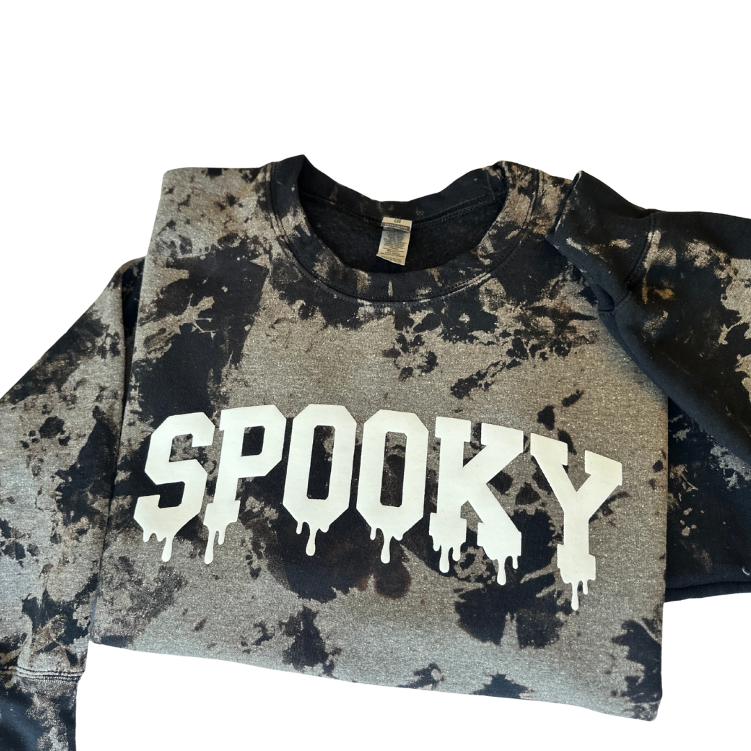 Dive into the spooky season with our Bleached Spooky Sweatshirt. Perfect for Halloween, this puff design adds a unique flair. It's not just a sweatshirt; it's a statement piece for your spooky collection. Embrace the eerie charm of Halloween with this distinctive design.