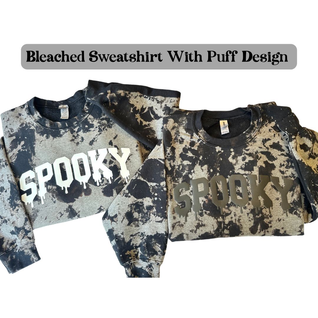Bleached Spooky Sweatshirt, Puff Halloween Sweatshirt
